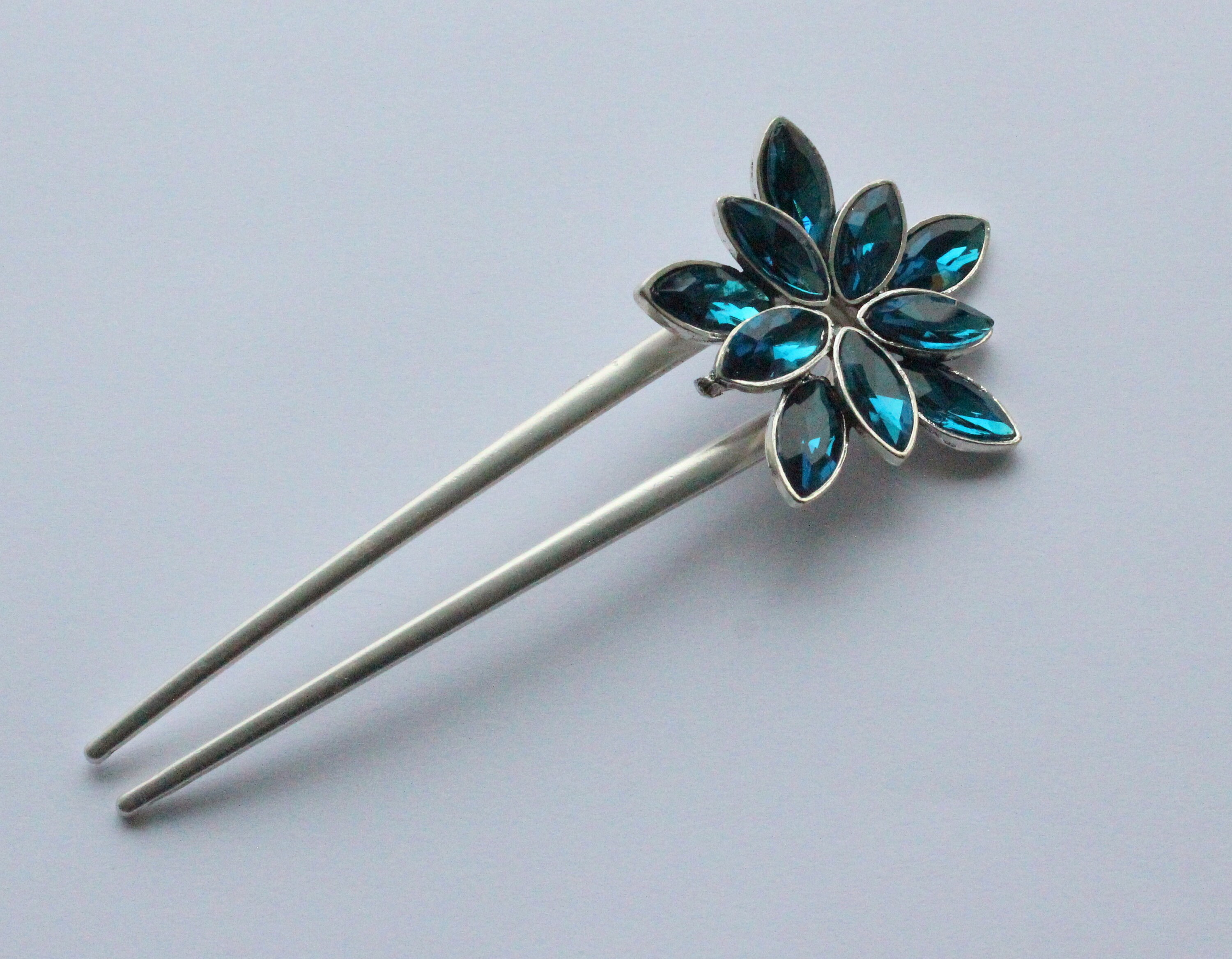 Blue Navy Sapphire Turquoise Sparkly Rhinestone Hair Pins Bridal De Vine