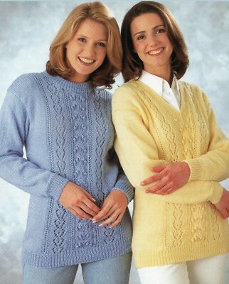 Ladies Sweaters V Or Crew Neck Knitting Pattern Dk Lace And Bobbles 30 42 034 1275 Ebay